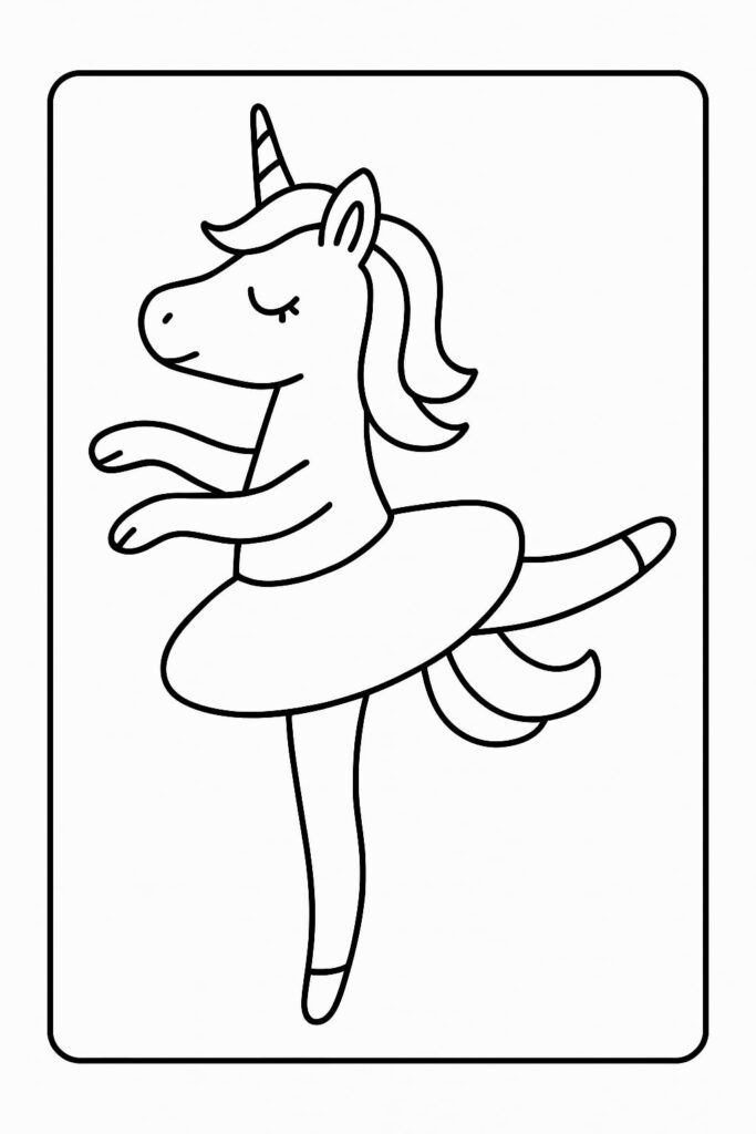 Inside this set, you’ll find ballerina unicorns in many styles and poses. Some are spinning in their tutus, others are leaping across a stage, and a few are practicing gentle ballet steps. The designs range from simple outlines for younger children to more detailed illustrations for those who enjoy careful coloring and shading.