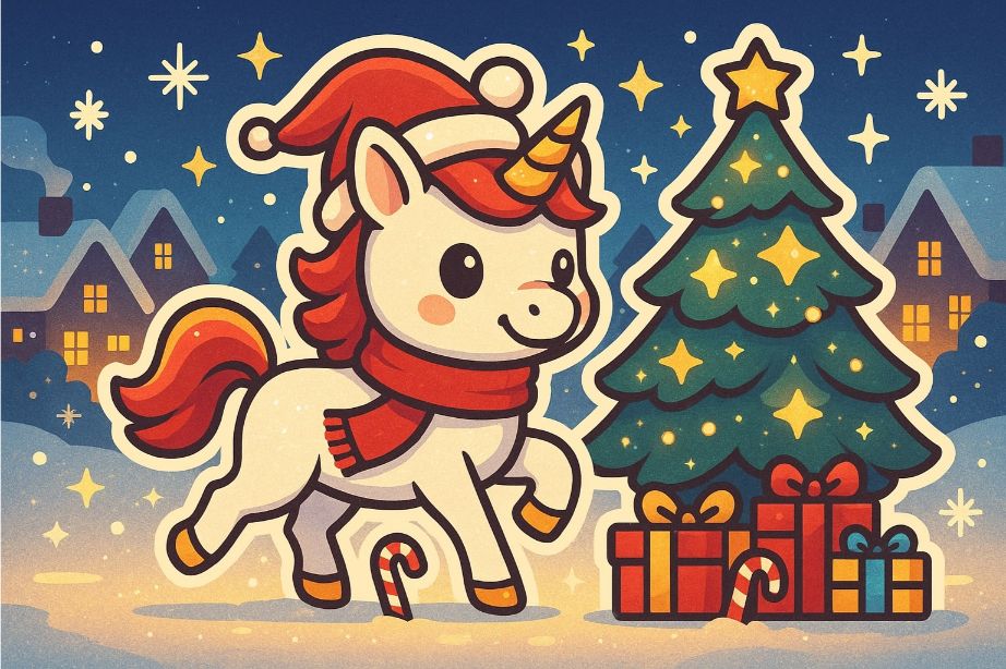 Pages with intricate manes, snowflake mandalas, or “Santa + unicorn flight” compositions challenge stamina and pencil control. Provide fineliners for strands of hair and metallic pencils for bells and baubles.