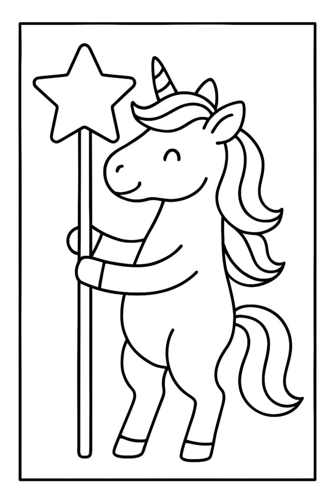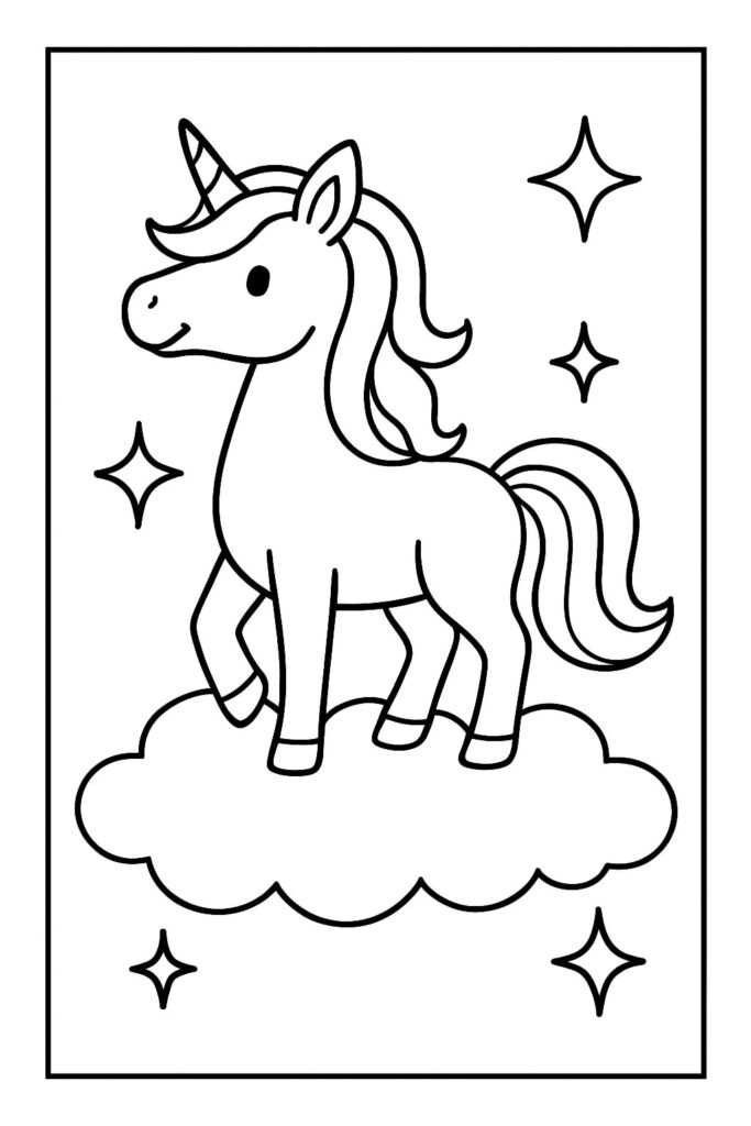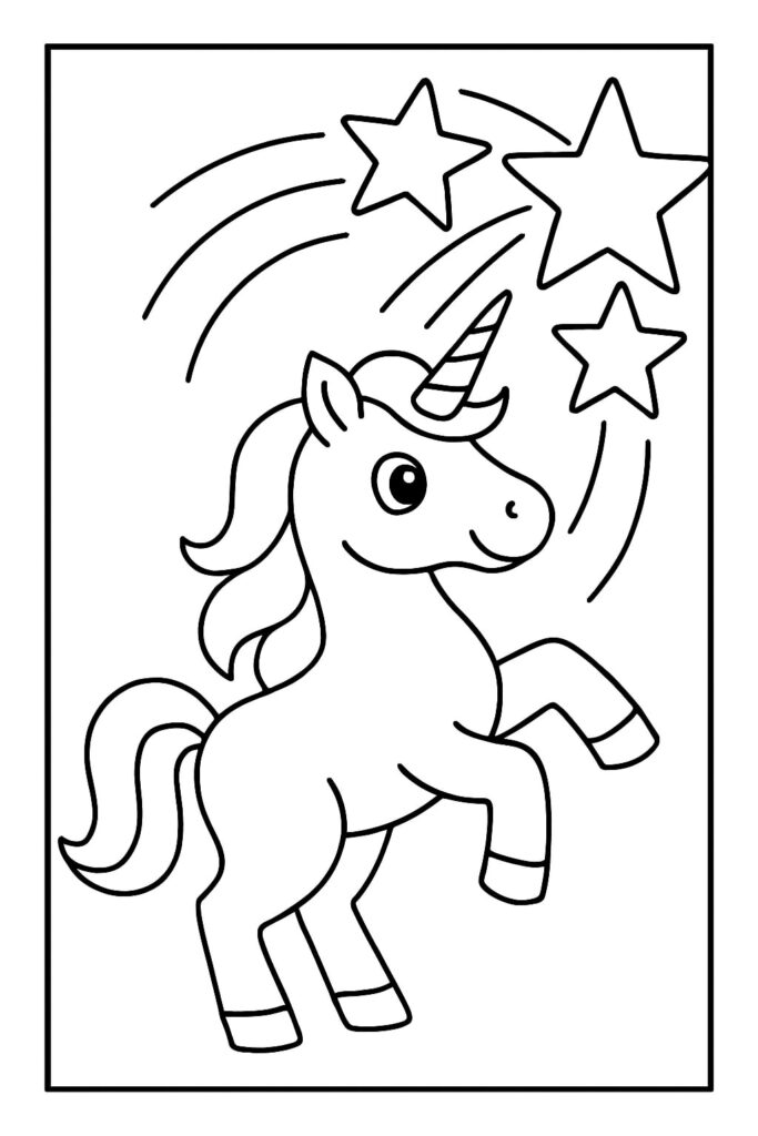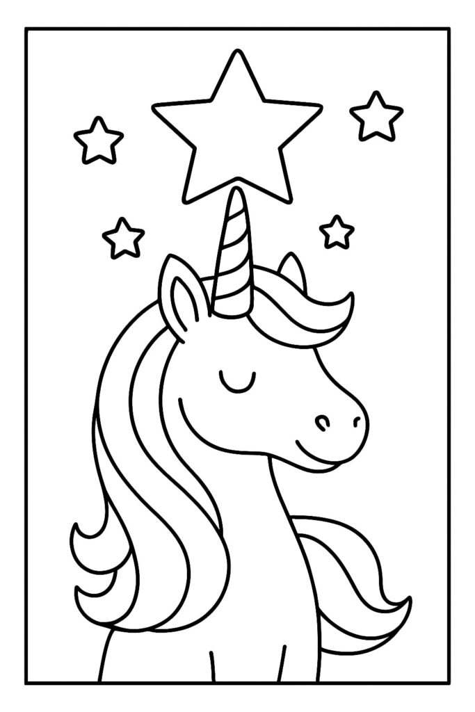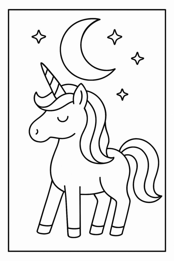 Choose bold outlines and a single main figure (unicorn head with a small rainbow, or unicorn by a big star). Keep backgrounds minimal; stickers can stand in for tiny “sparkles.” Print on standard 80–90 gsm and stick to crayons or washable markers—simple tools help success.