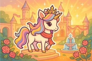 A mother unicorn nuzzling her foal instantly suggests care, comfort, and bedtime. That emotional cue helps even reluctant colorers engage: “What is the baby feeling? Where are they going?” This “Mom and Baby Unicorn” page make it easy to start a story right from the image caption.