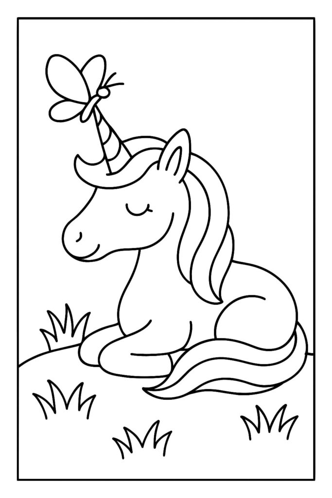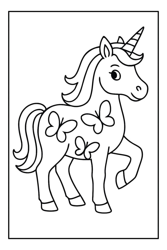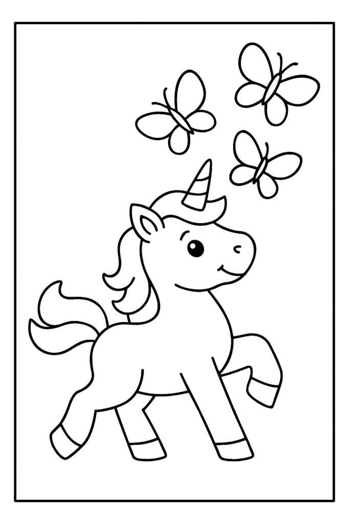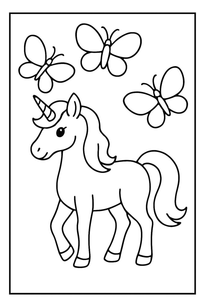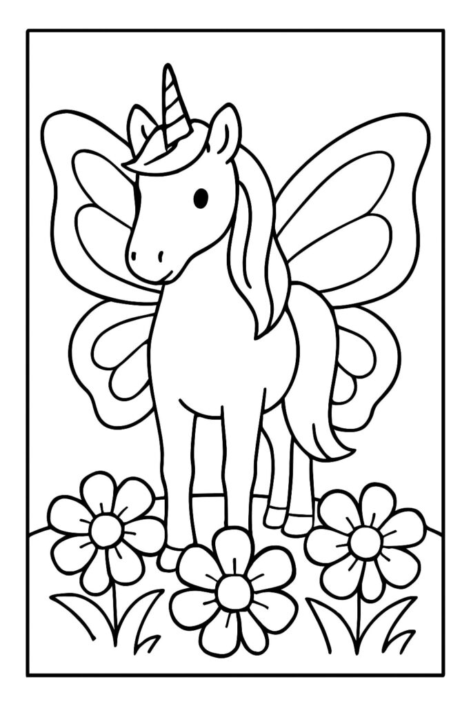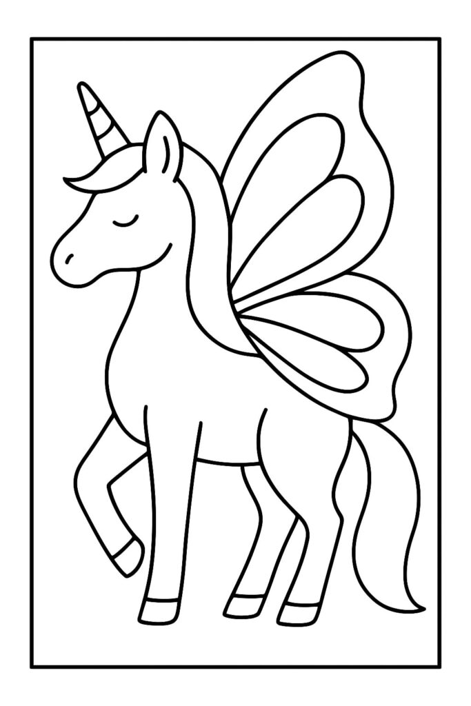 A unicorn butterfly coloring page blends two beloved themes: the mythic grace of a unicorn and the delicate patterns of butterflies. Designs commonly fall into three styles: (1) a unicorn with butterfly companions, (2) a unicorn sporting butterfly-style wings, and (3) decorative scenes where butterflies form borders, patterns, or a garden canopy. Many pages use bold outlines for easy coloring and include comforting motifs like clouds, stars, and flowers—perfect for early artists. Kids love these pages because butterflies introduce symmetry and repetition (very satisfying to color), while unicorns bring the story spark—suddenly there’s a character to root for.