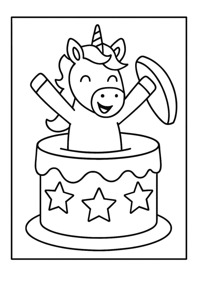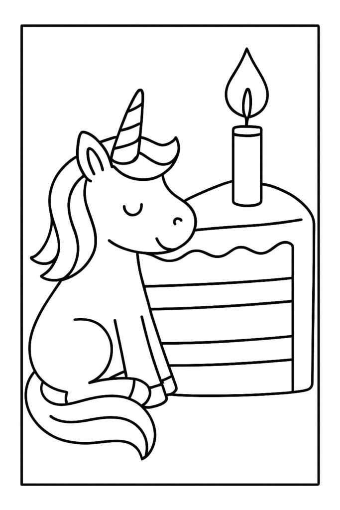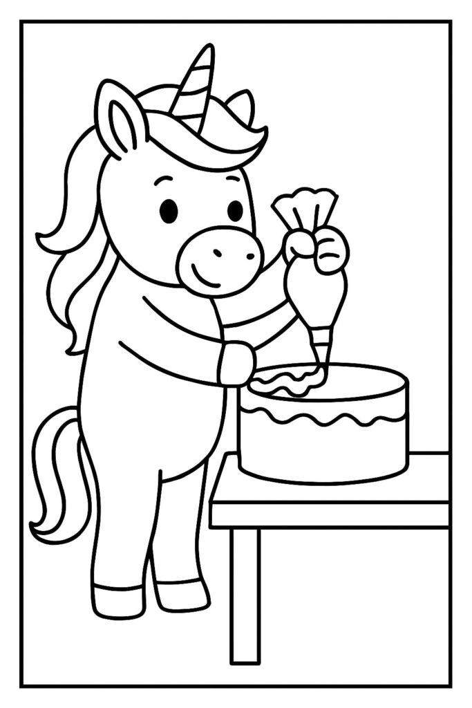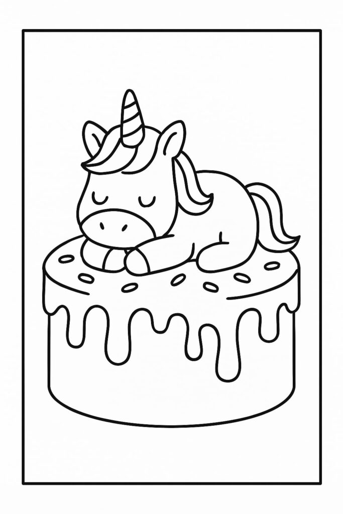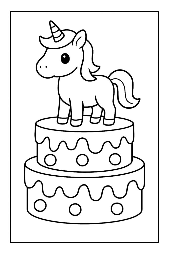 Choose easy unicorn cake for preschool pages with thick outlines, large frosting areas, and simple faces. Offer short crayons or triangle pencils for better grip. Encourage kids to color the background first with broad strokes (confetti, stars), then move to the cake.