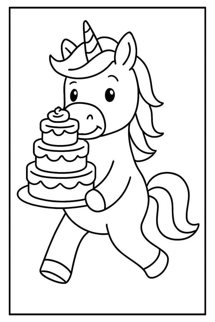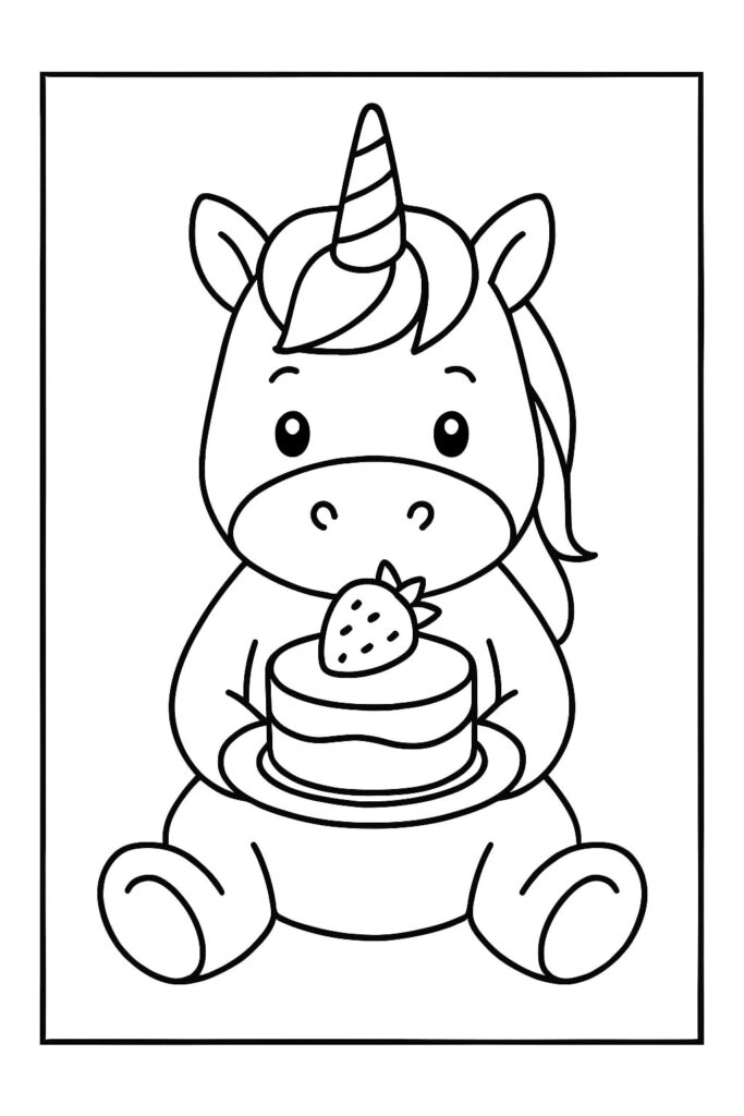 - Unicorn cake coloring pages blend party excitement with a friendly character for instant engagement.