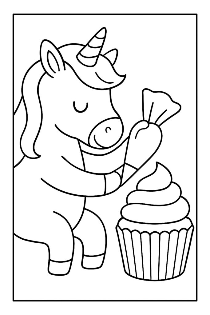 Offer detailed unicorn cupcake mandala borders or a scene with multiple cupcakes in different “flavors.” Teach three-value shading (light/medium/dark) on the horn and frosting drips to build dimension.