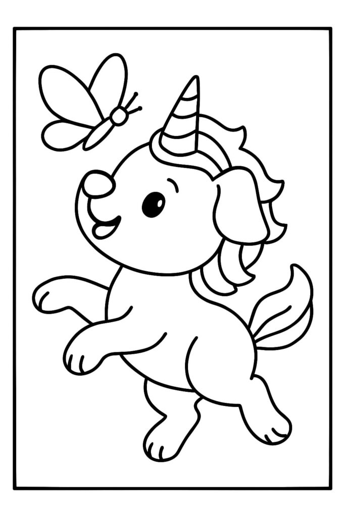 Use easy unicorn puppy for preschool pages with bold outlines and big shapes. Start with two crayons for one minute to build confidence.