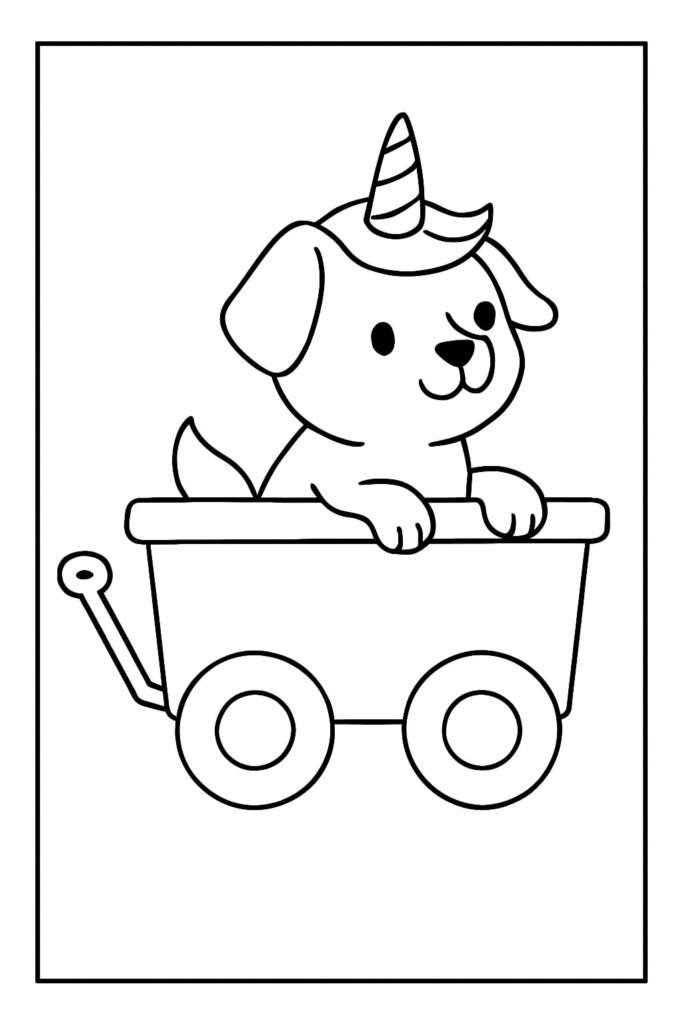 Choose easy unicorn puppy for preschool designs with thick outlines, large cheeks, and simple horns. Offer triangle crayons or short pencils for a comfy grip. Encourage kids to color the background first (big sky swirls or scattered hearts), then the puppy, then tiny accents like collar tags.